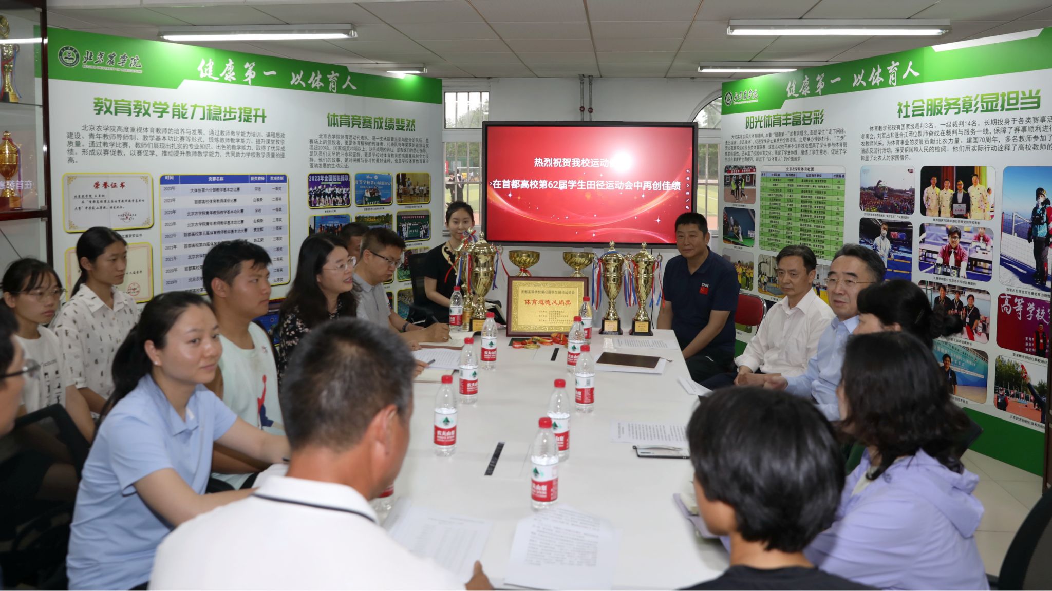 为进一步落实立德树人根本任务,增强体育育人实效,5月23日下午,学校党委书记赵锋,党委常委、副院长武艳和相关部门负责人,到学校体育教学部看望慰问永利3044官网唯一近日在首都高校第62届学生田径运动会上取得优异成绩的运动健儿和教练员,听取学校体育育人工作情况汇报,与师生代表进行座谈交流。