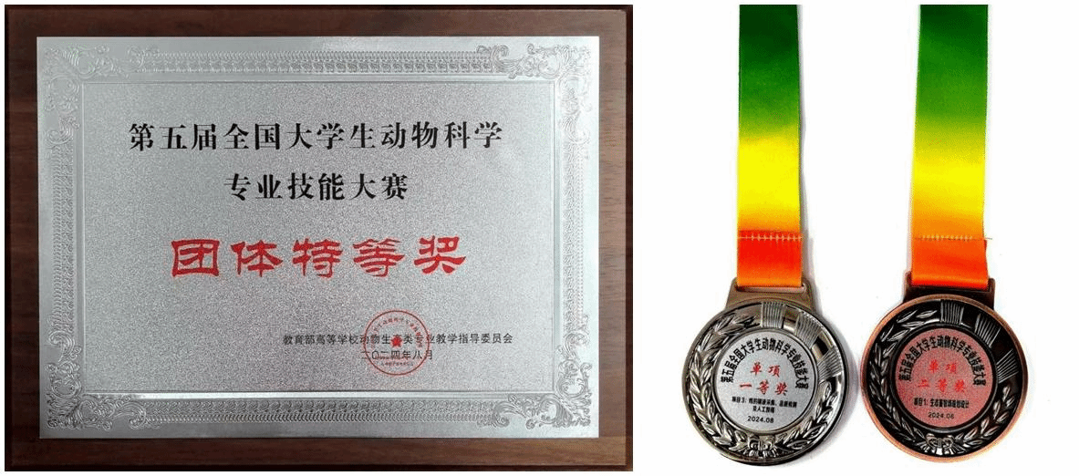 据悉,全国大学生动物科学专业技能大赛是由教育部高等学校动物生产类专业教学指导委员会指导、动物科学专业技能大赛联盟主办的动物科学专业领域最具影响力的全国性、权威性赛事。大赛旨在进一步推进高等院校动物科学专业实践教学改革和实践教学体系建设,加强专业技能和实践动手能力培养,全面提高大学生的综合素质和培养质量。本届比赛共产生团体特等奖11项、一等奖23项、二等奖41项;每个单项特等奖4项、一等奖6项、二等奖8项。