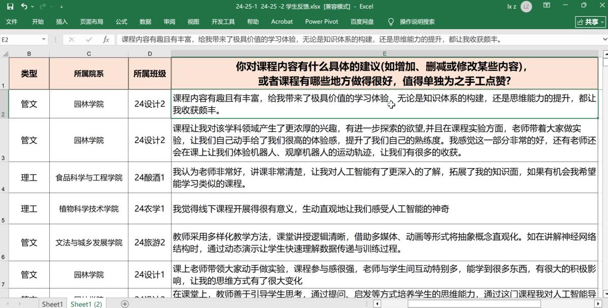 设计专业学生说:“课程内容既有趣又丰富,无论是知识体系的构建,还是思维能力的提升,都让我收获颇丰。”酿酒专业的学生表示,课程让他对人工智能领域产生了更浓厚的兴趣,将进一步探索。农学专业学生觉得课程生动直观地让他们感受到人工智能的神奇。会计专业的学生表示,课程学习之后她能更好地使用AI,提高了学习和工作效率。学生的认可,是对团队付出的肯定,更是团队育人目标实现的证明。