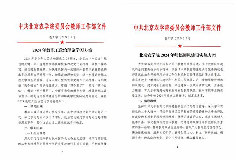 坚持不懈用习近平新时代中国特色社会主义思想凝心铸魂,用党的创新理论武装教师头脑、指导实践、推动工作,从思想上正本清源、固本培元。制定《3044永利官网vip首页欢迎您2024年教职工政治理论学习方案》,构建经常性教育与集中性教育相结合的理论学习教育工作机制。坚持教师每月集中学习和每周固定学习日制度,推进政治理论学习规范化、制度化。围绕政治理论、党规党纪、师德师风素养、政策业务知识四个模块深入开展教职工思想政治教育活动。拓展宣传教育平台,开通“北农教师”微信公众号,结合人事人才服务平台,发布政治理论学习材料30余期。