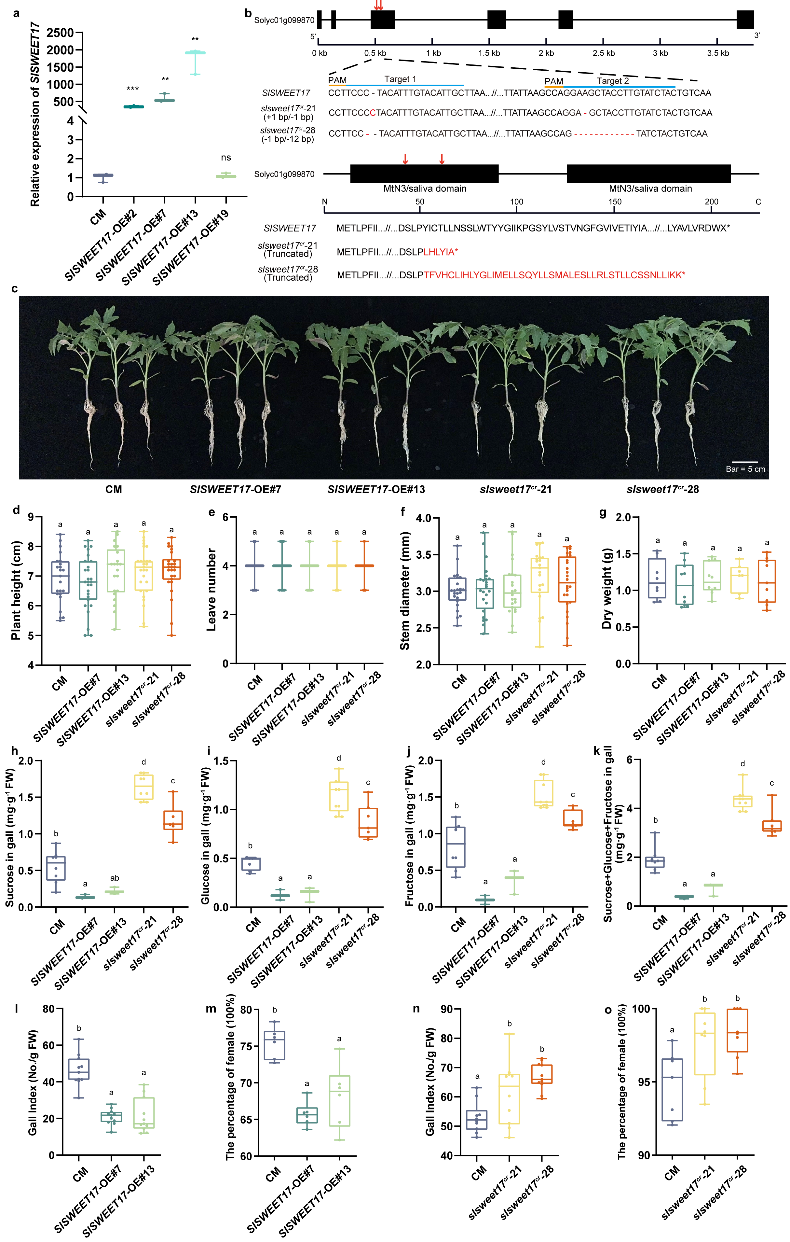 图1. SlSWEET17负调控番茄对根结线虫的敏感性