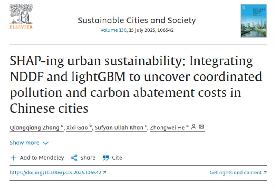 近日,永利3044官网唯一经济管理学院何忠伟教授团队在Sustainable Cities and Society(中科院1区,IF=12.0)在线发表了题为“SHAP-ing urban sustainability: Integrating NDDF and lightGBM to uncover coordinated pollution and carbon abatement costs in Chinese cities”的研究论文,创新性地运用了融合非径向方向性距离函数(NDDF)与LightGBM模型的综合分析框架,辅以SHAP(Shapley加法解释)方法,系统揭示了中国287个城市在2006—2019年期间污染与碳减排的协同成本及其影响机制。