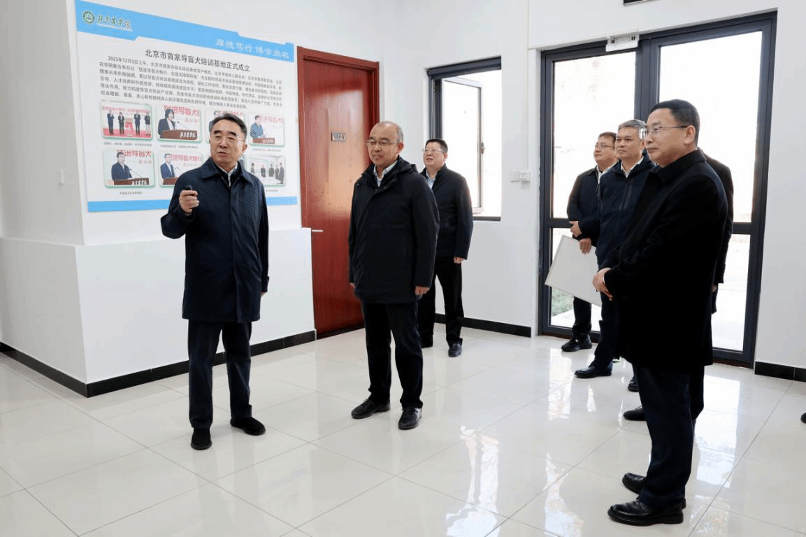 于英杰一行来到导盲犬培训示范中心,听取学校扎实推进北京市导盲犬培训基地建设情况汇报。实地察看了犬舍、中兽医诊疗室、诊断处置室等,观看了导盲犬工作展示,希望学校发挥学科专业优势,加强国际合作,继续大力推动导盲犬培训基地建设,用心用情用力服务首都残疾人事业高质量发展。