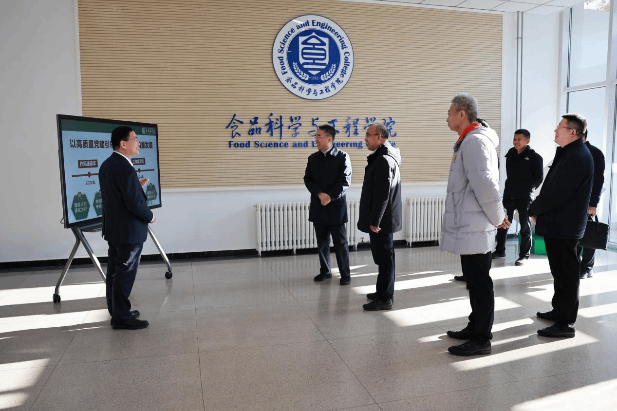 于英杰来到食品加工与食品安全北京市实验教学示范中心,听取学校关于构建都市农林特色学科体系、大力培养高水平应用型人才、提升科研成果转化水平、打好服务乡村振兴“阵地战”相关情况汇报。先后来到粮油加工实验室、啤酒和葡萄酒酿造中试车间、益生菌发酵中试车间、果蔬加工及贮藏实验室,详细了解学校特色人才培养和专业建设情况。