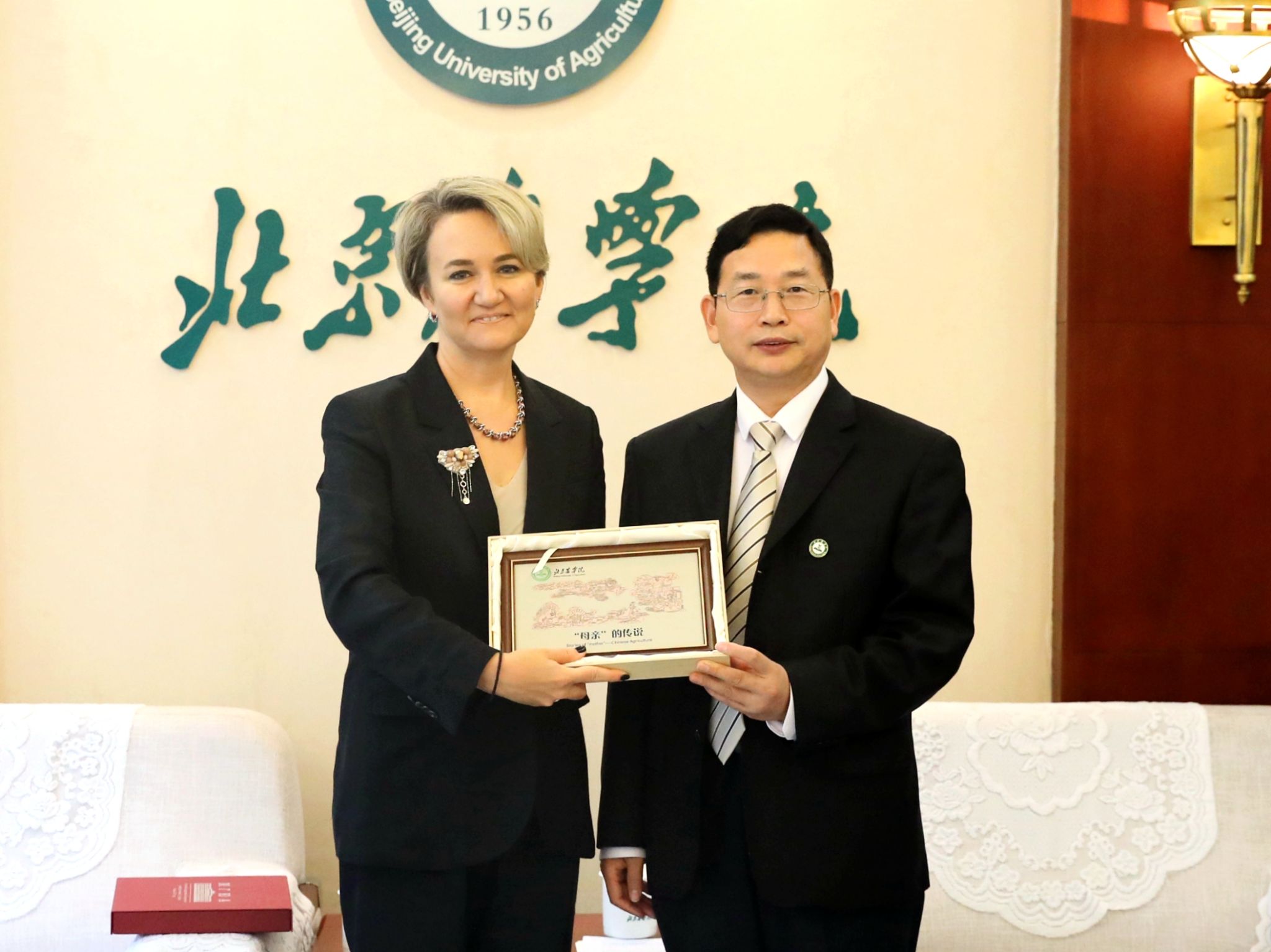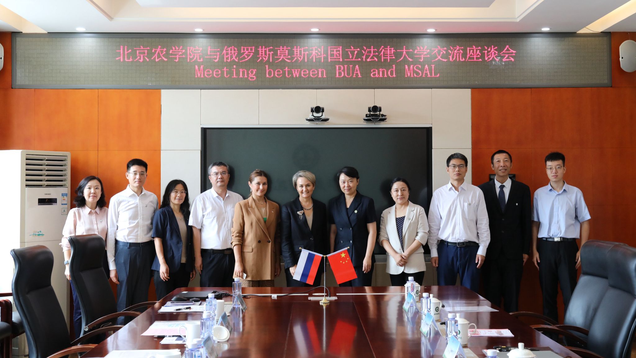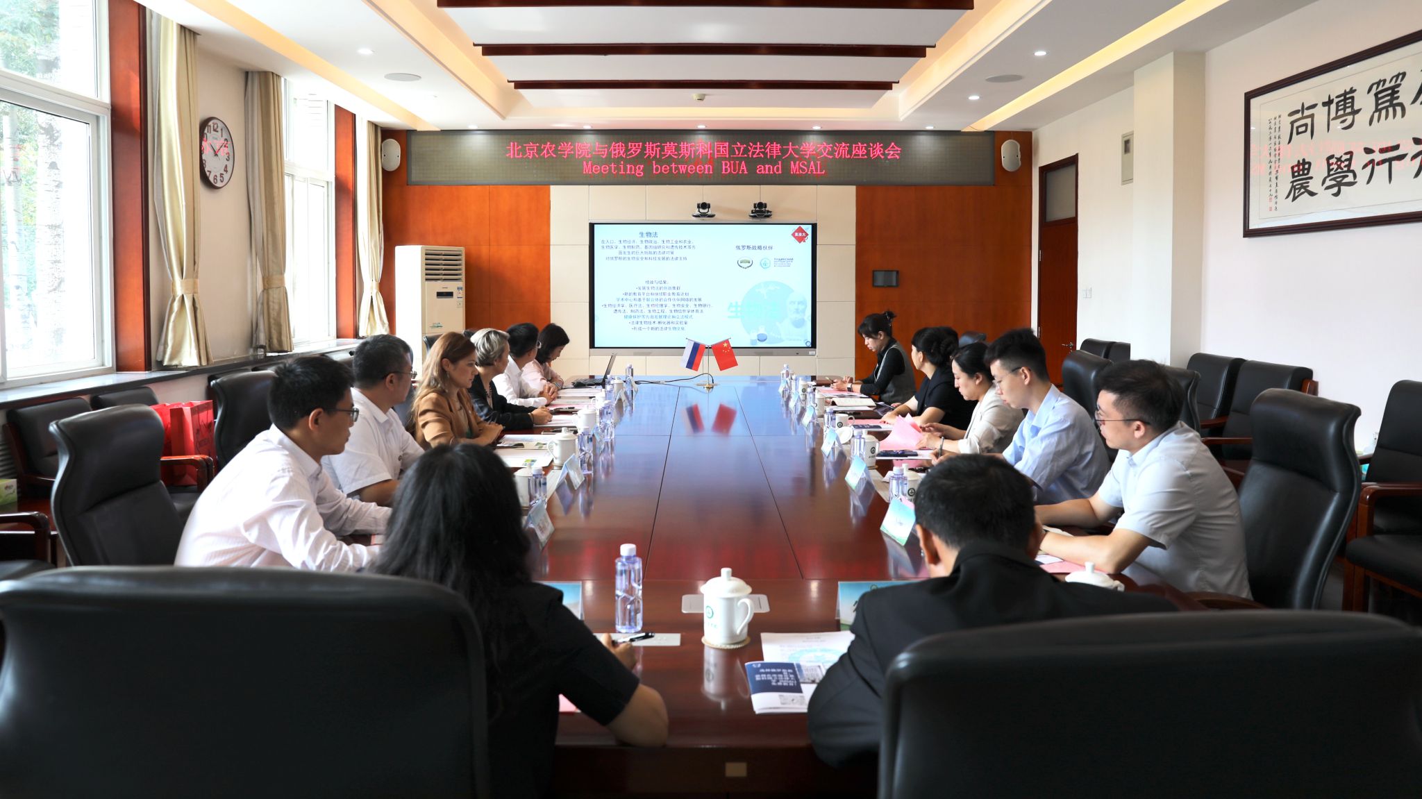 段留生对俄罗斯莫斯科国立法律大学代表团一行的到访表示热烈欢迎。他简要介绍了学校办学特色及合作办学情况。他指出,两校均位于所在国家的首都,在推进“首都乡村振兴法治体系建设”方面有广阔的合作前景。学校刚刚召开的第四次党代会明确提出要持续提高中外合作办学水平和人才培养质量。期待双方在法学、农业知识产权、农业法等领域开展师生交流、学分互认、学术研究等方面的合作,实现优势互补、合作共赢,共同推进两校高质量发展。玛利亚·马卓丽娜介绍了俄罗斯莫斯科国立法律大学的基本情况,她希望未来双方在人员互访、学生交流及共建科研团队等方面进一步深化合作。