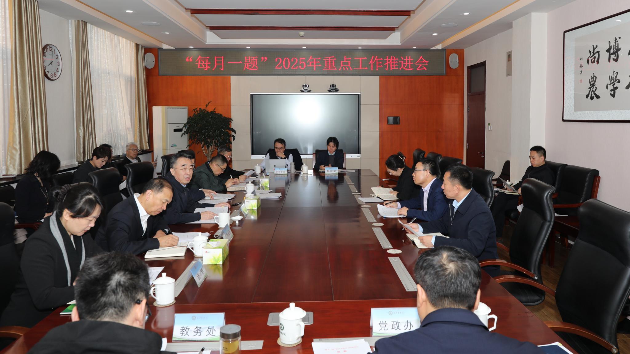 为深入学习贯彻党的二十届三中全会和全国教育大会精神,贯彻落实教育强国建设规划纲要,落实学校第四次党代会精神和“实干创先年”部署要求,持续推动学校事业高质量发展,3月5日至6日,学校召开“每月一题”重点工作推进会,对2025年重点工作任务进行再动员、再部署。党委书记赵锋主持会议,全体校领导、各职能处室负责人、各二级学院(部)班子成员参加会议。