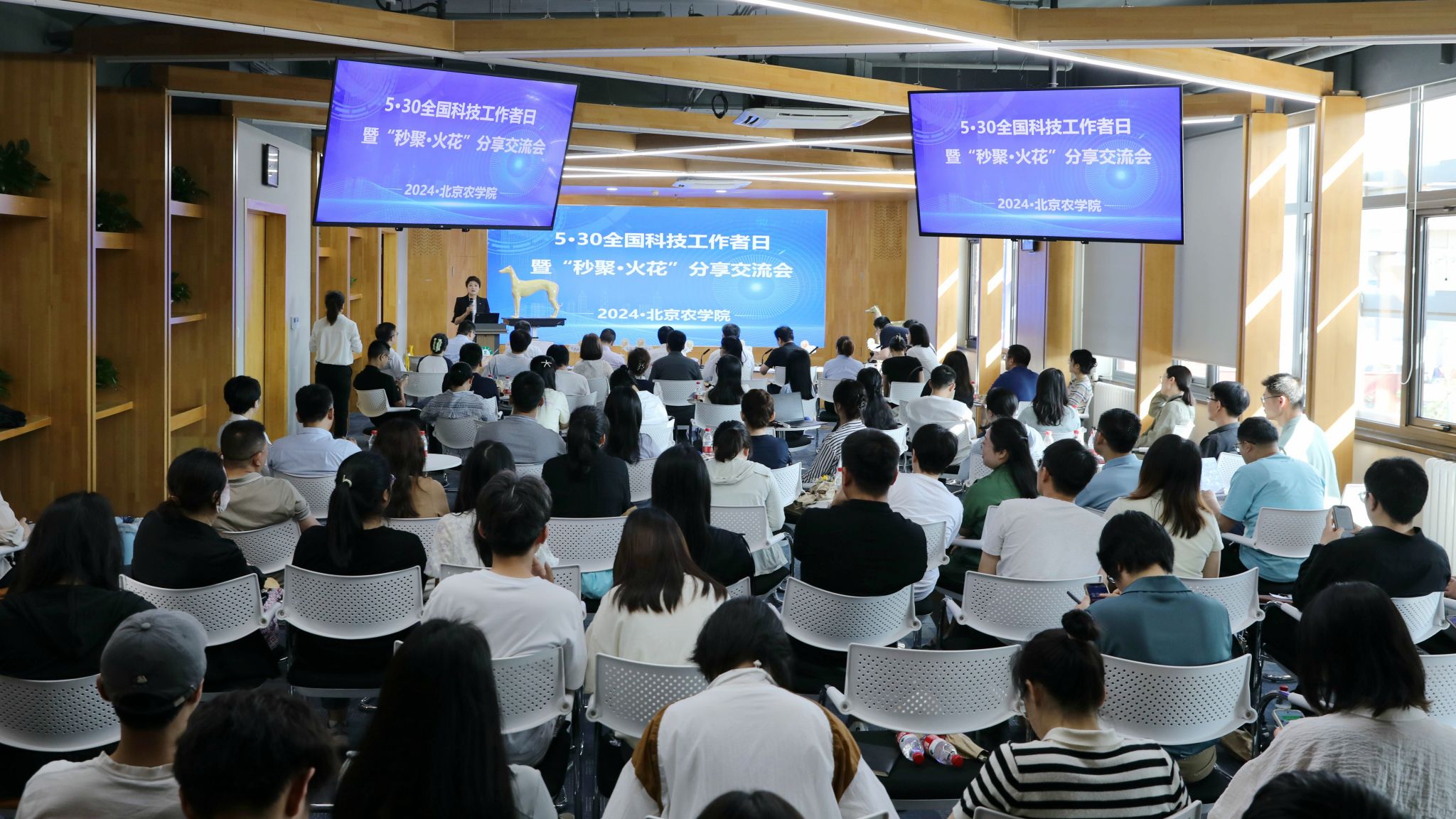 在5月30日举办的“秒聚·火花”分享交流会上,32位青年教师分享了自己的创意“火花”,近10位行业专家面对面给予点评和指导。“学校启动‘火花行动’计划,就是鼓励青年教师抓住转瞬即逝的创意点子,聚焦科技创新和转化应用开展研究,让科研‘火花’变成‘火苗’,继而化为燎原之势。”学校党委副书记、院长段留生介绍,学校将在党委坚强领导下,继续通过“火花行动”计划等多项举措全面支持青年科技人才干事创业、成长发展,为广大青年科技人才脱颖而出,在科技创新、服务乡村振兴等领域挑大梁、当主角提供广阔平台,为推动学校事业高质量发展和服务新时代首都发展作出新的更大贡献。