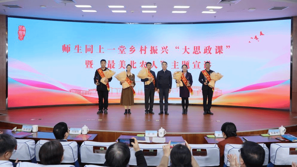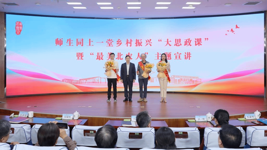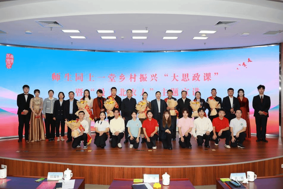 为深入学习贯彻习近平总书记在国家勋章和国家荣誉称号颁授仪式上的讲话精神和全国教育大会精神,在全校大力弘扬教育家精神,进一步推动全校形成见贤思齐、追赶超越的浓厚氛围,以改革创新精神推动学校高质量发展再上新台阶,10月30日,学校举办师生同上一堂乡村振兴“大思政课”暨“最美北农人”主题宣讲活动。校领导赵锋、段留生、武艳、吴君楚出席活动。