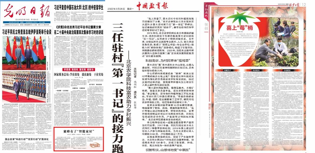 2022-2023年度,在学校党委的坚强领导下,学校宣传思想领域的广大党员干部,坚决担负起举旗帜、聚民心、育新人、兴文化、展形象的职责使命,高质量讲好“北农故事”、传播“北农声音”,旗帜鲜明树正气、树榜样、树典型,以服务全面推进乡村振兴为抓手,大力宣传师生在服务乡村振兴中的生动实践、鲜活案例、先进典型和重要成果,中央电视台、新华社、人民网、光明网、光明日报、中国教育报、北京日报、北京电视台等进行了广泛深入报道,取得了良好传播效果和社会影响,全面展示了北农师生的担当与风采。