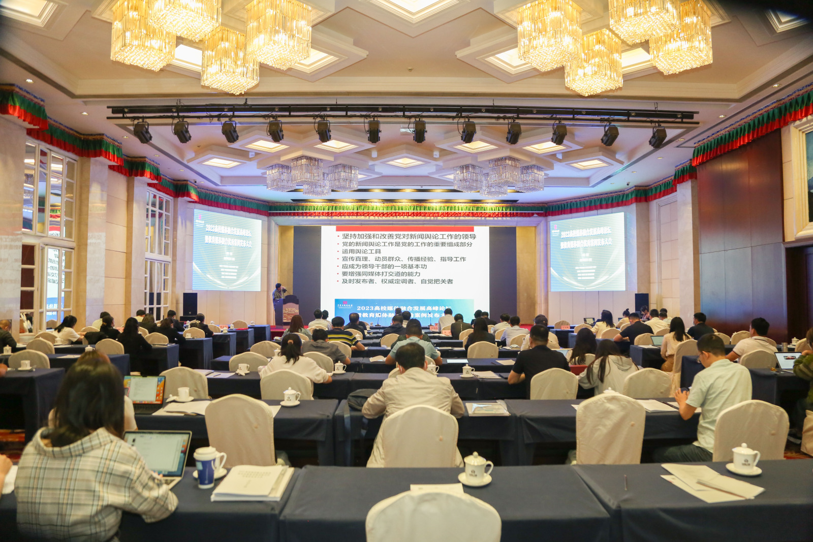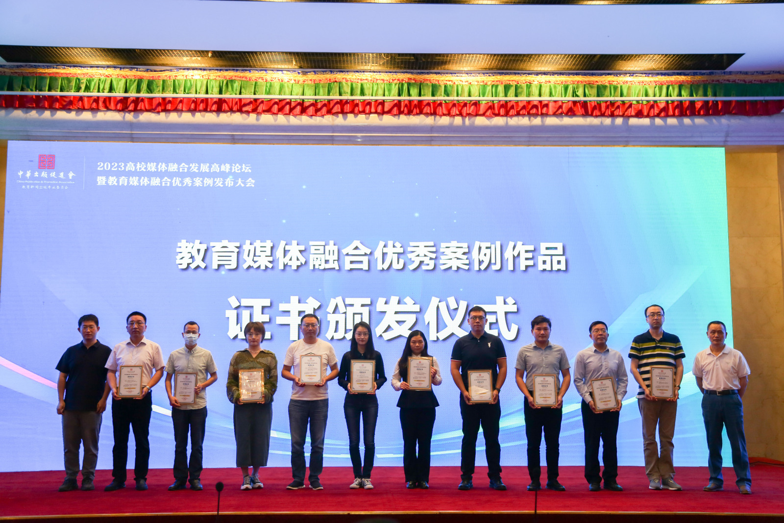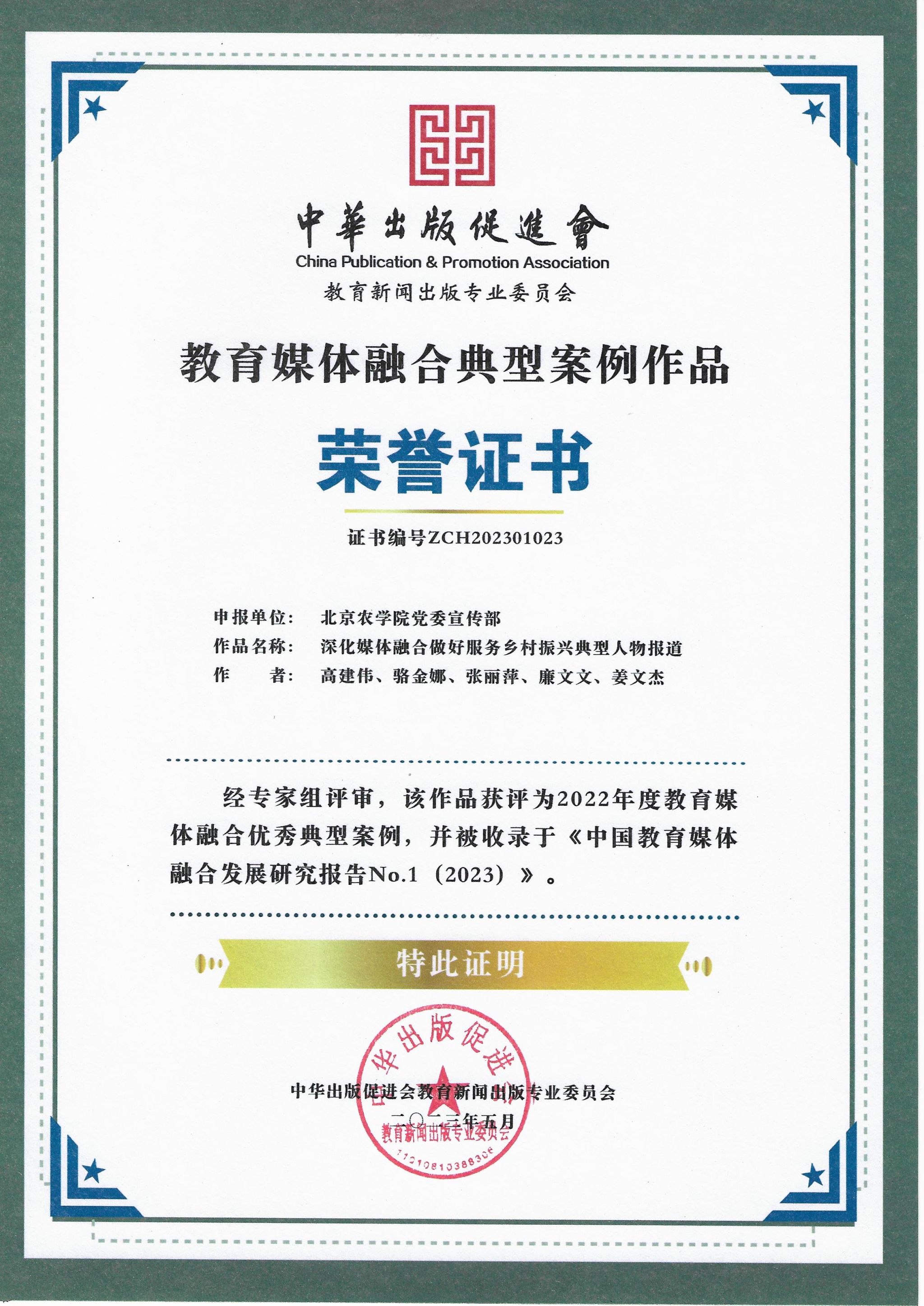 近日,由中华出版促进会教育新闻出版专业委员会主办的2023全国高校媒体融合发展高峰论坛暨媒体融合优秀案例发布会在京举行。来自全国近百所高校宣传部门负责人及获奖代表参会。会上对在高校教育媒体融合典型案例作品、案例项目、技术创新与应用场景征集活动中获奖的单位给予表彰并颁发荣誉证书。永利3044官网唯一党委宣传部申报的《深化媒体融合做好服务乡村振兴典型人物报道》案例作品,从全国高校126件申报作品中脱颖而出,被评为2022年度教育媒体融合优秀典型案例,并被收录于《中国教育媒体融合发展研究报告NO.1(2023)》。