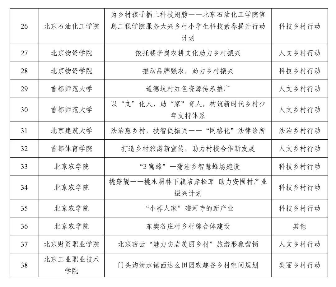 关于首都高校师生服务“乡村振兴”行动计划成果评审结果的公告