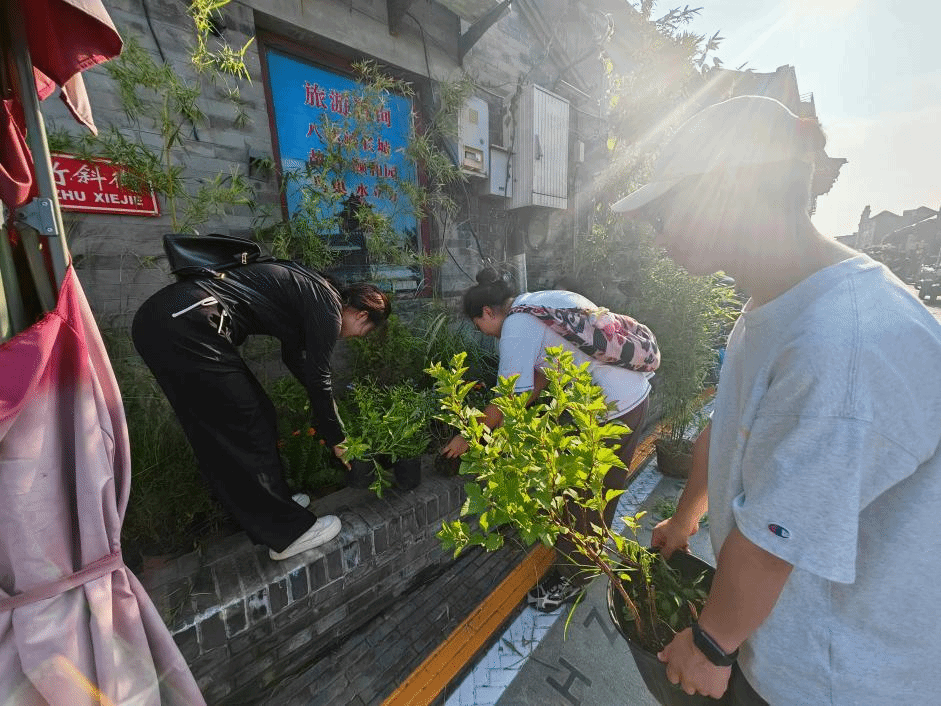 国庆前夕,园林学院李金苹老师带领团队在北京大栅栏街道及其下辖的杨梅竹斜街、西河沿街、琉璃厂东街等地开展了一系列胡同美化项目。