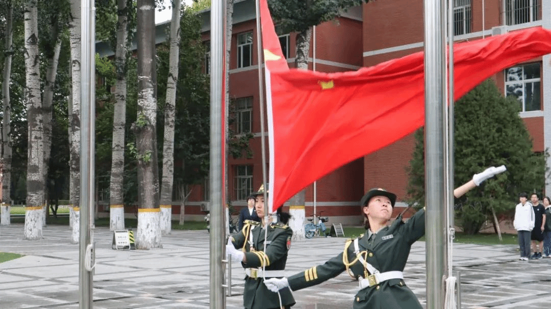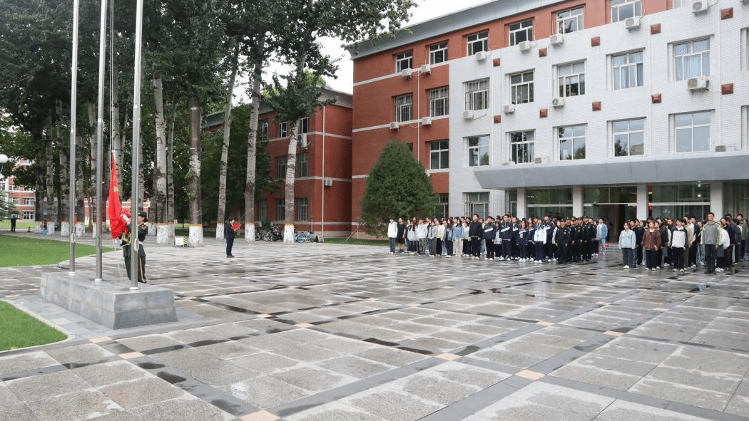 早上8时,伴随着雄壮的国歌,五星红旗冉冉升起。师生肃立静默,向为中国人民解放事业和共和国建设事业英勇献身的烈士默哀。