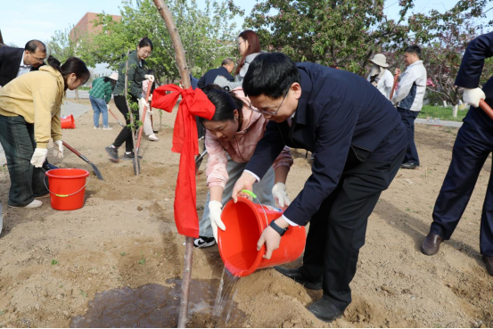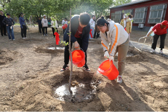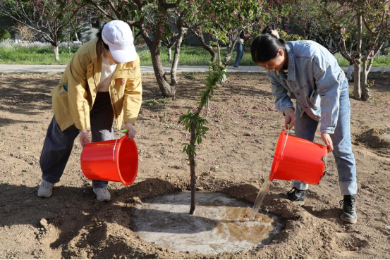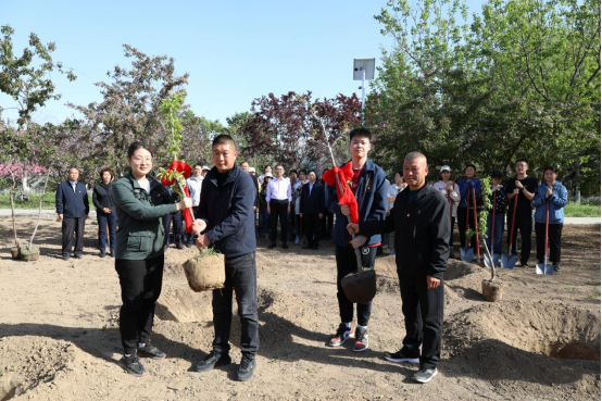 看着新栽的树苗林立,大家都露出了笑容。校领导对同学们踊跃参与农事实践表示赞许,对师生长期以来深入田间地头开展社会服务和技术帮扶表示高度肯定。党委书记赵锋,党委副书记、院长段留生勉励同学们要深入学习习近平总书记给中国农业大学科技小院同学们的回信精神,志存高远、脚踏实地,把课堂学习和乡村实践紧密结合起来,厚植爱农情怀,练就兴农本领,在乡村振兴的大舞台上建功立业,真正做到“把论文写在京华大地上,把成果凝结在农民的收获里”,为服务新时代首都发展和全面推进乡村振兴贡献北农学子的青春力量。