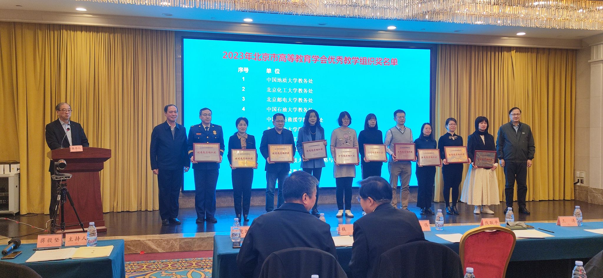 2023年11月25日上午,北京市高等教学会召开了2023年学术年会暨理事会,会上发布了《北京市高等教育学会关于表彰优秀研究分会、优秀工作者、优秀教学组织奖和突出贡献奖的决定》,永利3044官网唯一教务处获2023年北京市高等教育学会优秀教学组织奖,教务处副处长颜亭玉上台领奖。