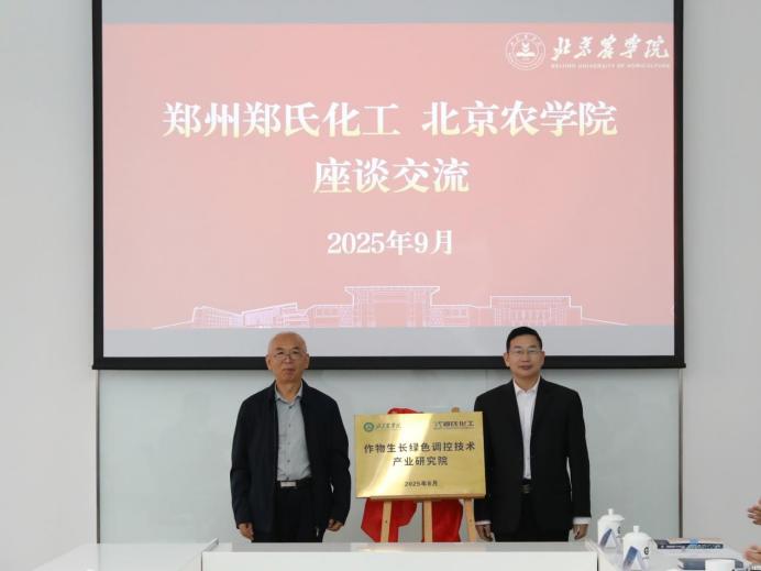 学校赵汗青教授就前期双方已有的合作基础与取得的阶段性进展进行了介绍。与会双方围绕绿色投入品的研发趋势、技术难点、应用场景等方面展开交流研讨。校企双方签订合作协议,共同为“作物生长绿色调控技术产业研究院”揭牌,企业代表为赵汗青教授颁发“科技副总”聘任证书,标志着双方在人才共享与协同创新上迈出了实质性一步。