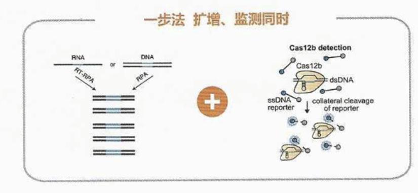 一步法操作:创新性地将RPA扩增与CRISPR检测整合在单一反应体系中,无需开盖,避免了气溶胶污染,简化了操作步骤。