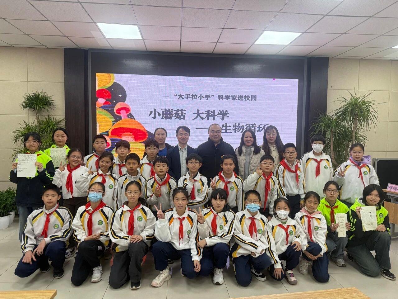 菌菇虽小,学问万千。为丰富学生科学认知,探索真菌世界的奇妙魅力,2025年12月11日上午,昌盛园小学南邵学校开展 “大手拉小手”科学家进校园科普活动。昌平区政协副主席、科协主席李雪红,昌平区科协科普发展中心副主任赵国政,昌盛园小学南邵学校执行校长由长龙,少年科学院小院士、学生代表及教师共120余人参加本次活动。学校特邀北京市食用菌产业体系岗位专家、3044永利官网vip首页欢迎您张国庆教授为师生带来《小蘑菇大科学——生物循环+》主题讲座,带领大家走进食用菌的趣味世界,感受科学与生活的紧密联结。